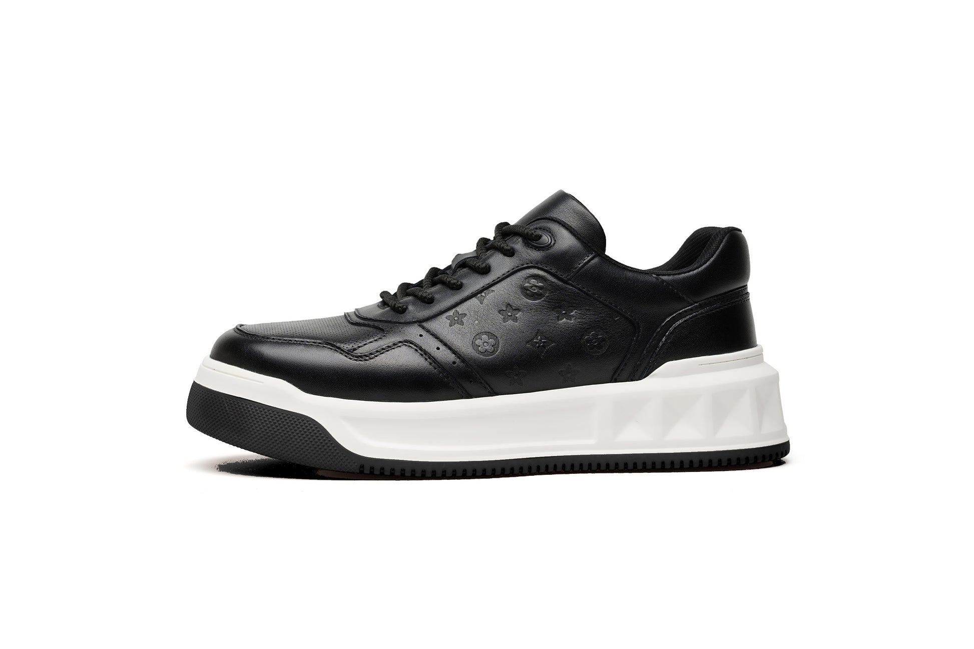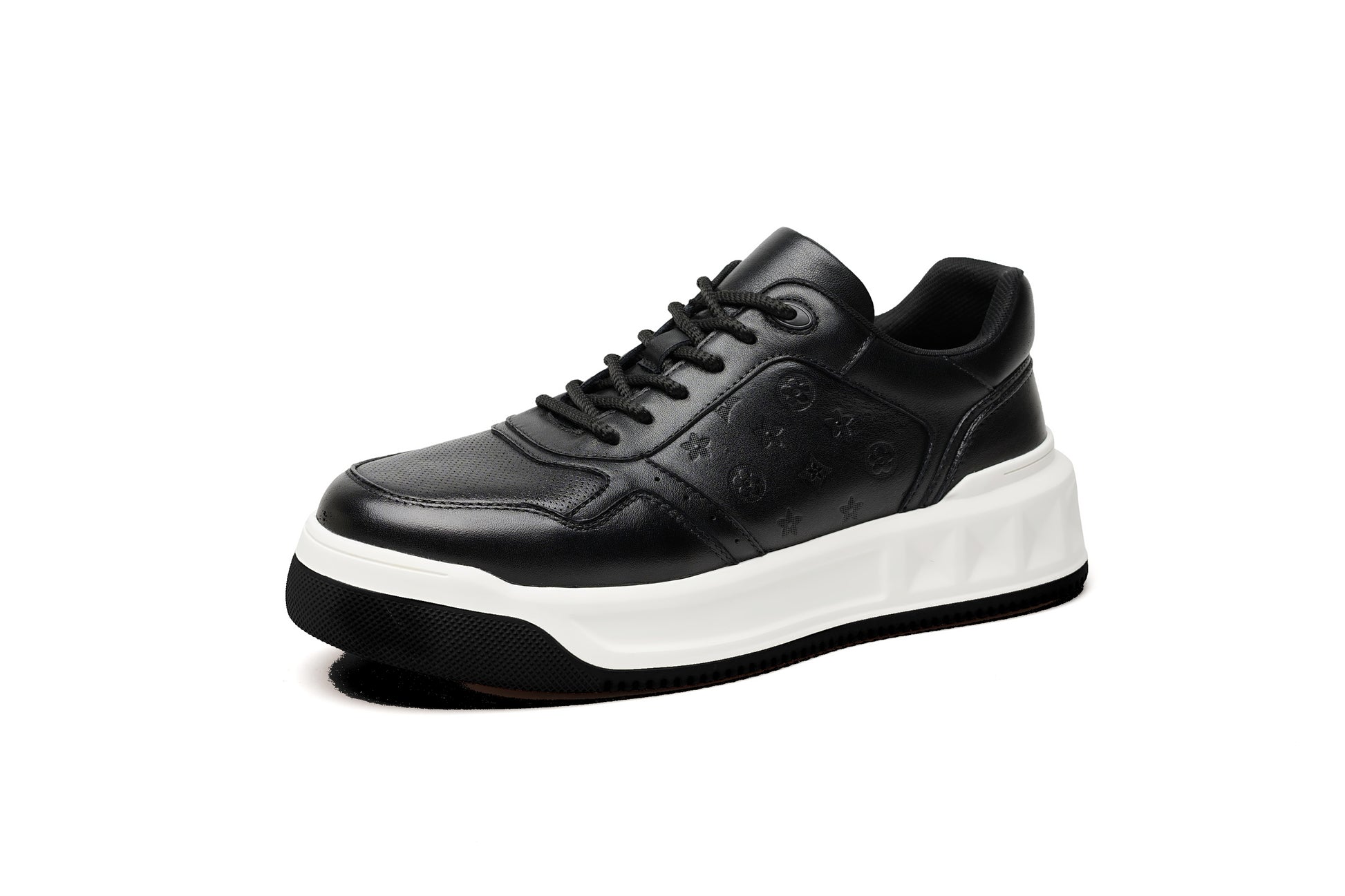 Crafted from premium full-grain cowhide leather, the upper delivers a sleek black sheen and refined texture. The minimalist silhouette is accented by subtle embossed details, combining understated elegance with a confident, urban edge. Designed for both casual and formal wear, it’s a versatile essential for modern living.